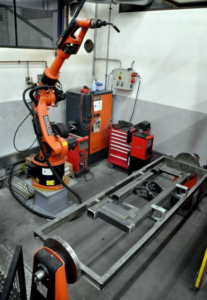 Robot/robotska roka z varilnim aparatom nadomesti ročno varjenje. Robot je primeren za serijske izdelke s ponovljivo natančnostjo Robotska roka ima 6 osi in omogoča gibanje in varjenje v vse smeri.